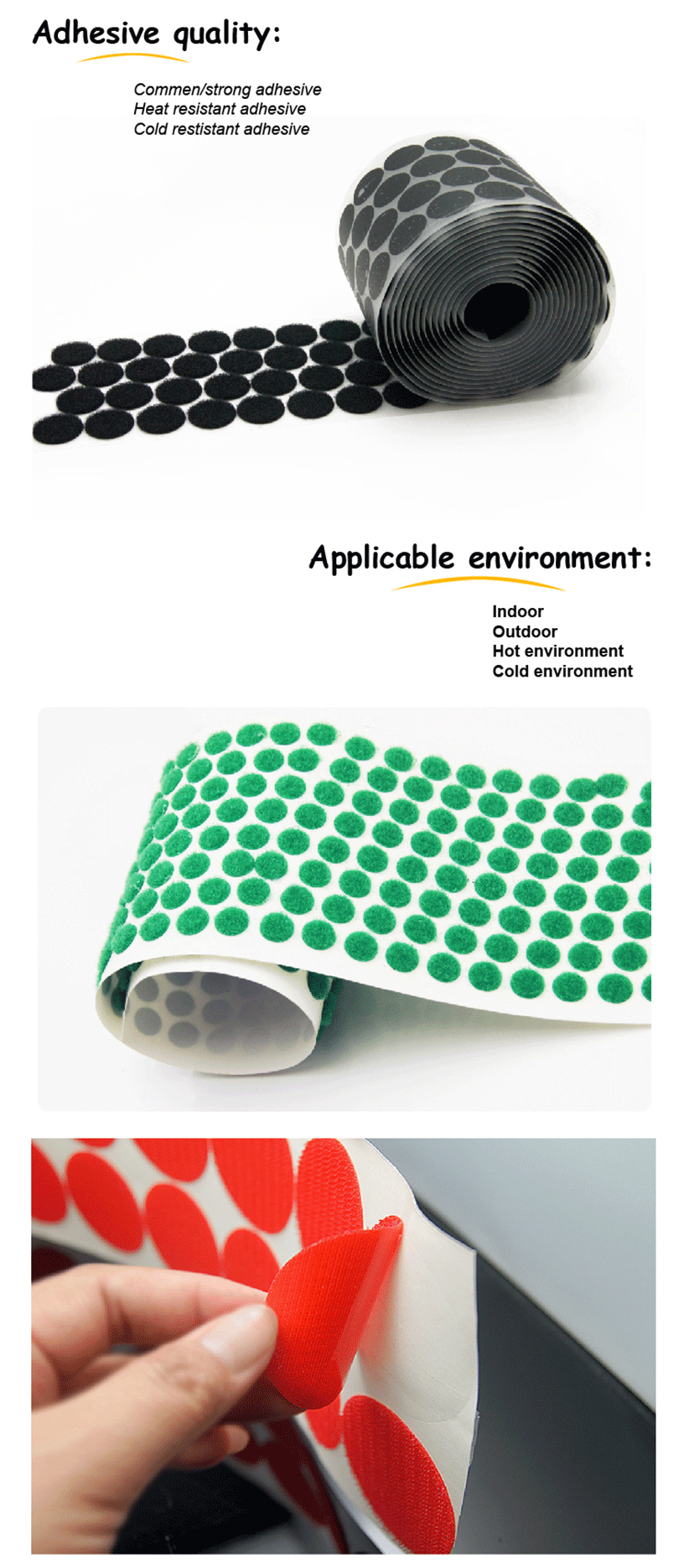 ميزة: الايكولوجية-- ودية، المقاومة للحرارة، ذاتية اللصق، عظيم عقد قوة النايلون لاصق هوك & أمبير؛ حلقة ش-- ورقة